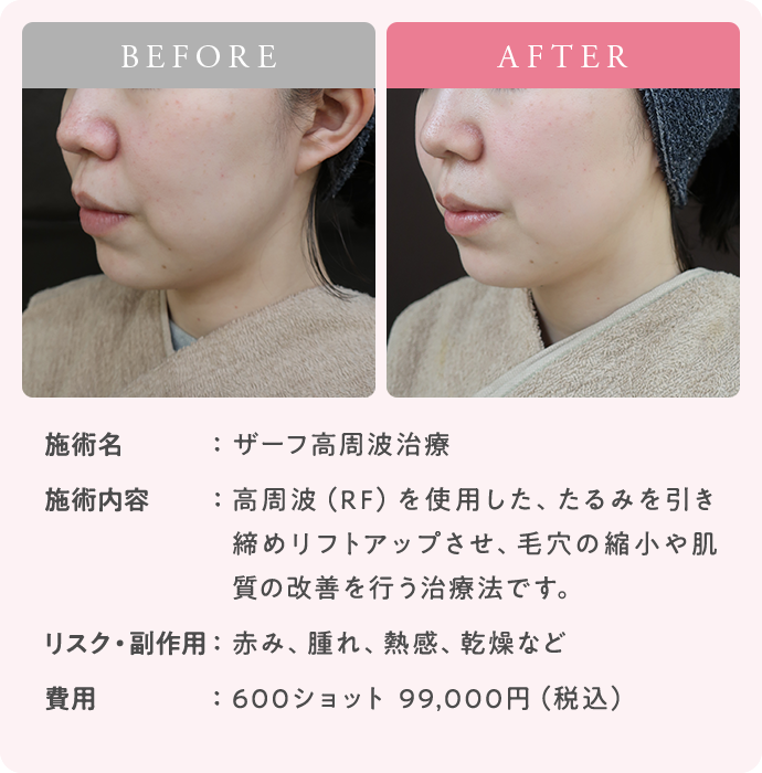 全く問題ありません。ハイフで痛みに挫折した方も、ザーフならほとんど痛みを感じずに治療を受けられます。